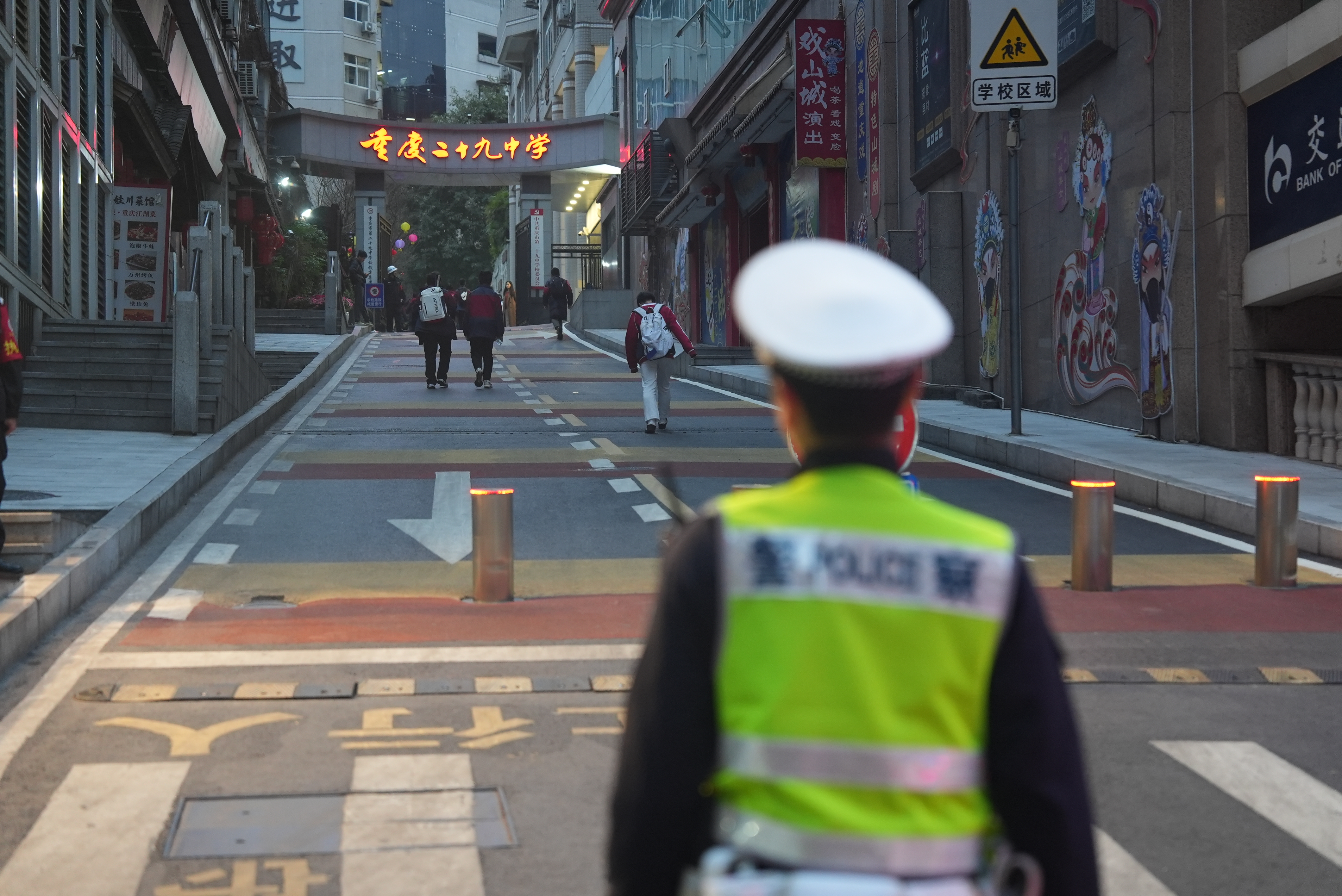 据了解,民警根据各学校具体情况,在校门前指定区域摆放水马、锥形桶,规划设置“护学通道”和“即停即走”区域,实现与家长们无缝对接,快接快送,切实创造安全可靠的交通及治安环境。另外,针对上清寺、大溪沟等重点片区通学高峰及中学晚自习时段的交通拥堵预判,渝中警方不仅增派警力值守“护学岗”,更精准启用中山四路“出三进一”潮汐车道、华福巷单向通行等临时管控措施,有效缓解相关路段通行压力。
