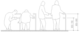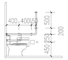 1 坐便器两侧应设置颜色鲜明的安全抓杆,轮椅接近坐便器一侧应设置可垂直或水平90°旋转的水平抓杆,另一侧宜设置L型抓杆;