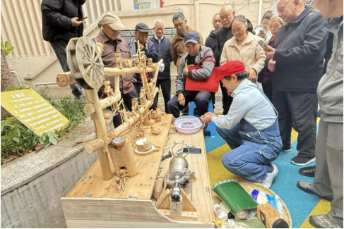 社区退休老人现场展示自己手工打造的绝活(陈孟芸 摄)
