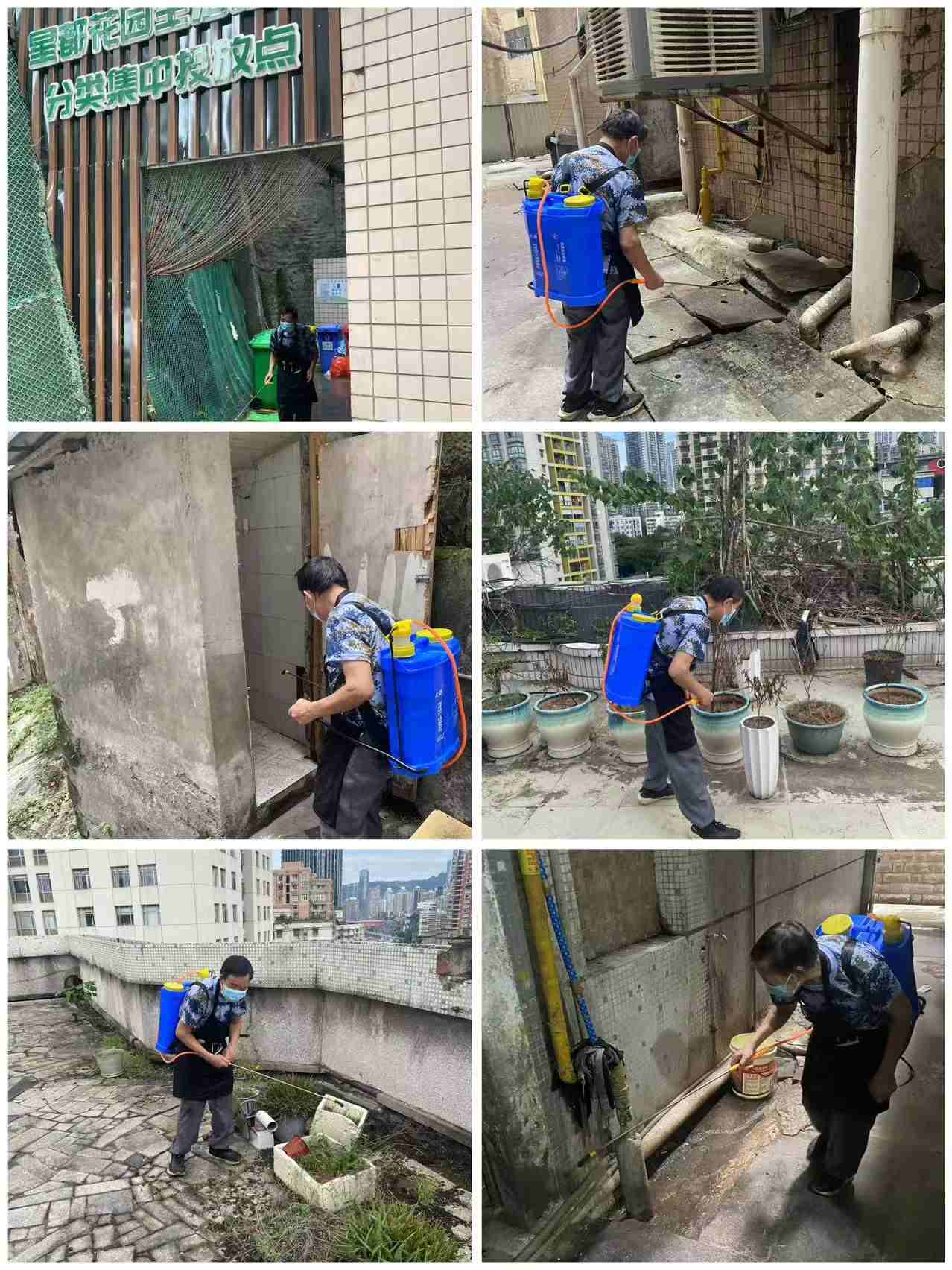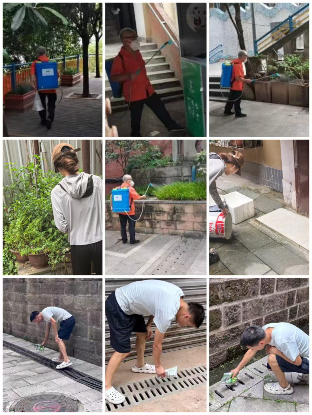为进一步筑牢辖区居民健康安全屏障,坚决遏制登革热、基孔肯雅热等蚊媒传染病传播风险,国庆期间,大溪沟街道办事处统一部署,各个社区配合竟达环保专业团队,集中开展蚊媒防控专项行动。此次防控工作精准锚定人和街小学周边核心区域,同时同步延伸覆盖周边社区绿化带、物业小区、居民楼栋、公共院坝及沿街商铺,实现 “重点聚焦 + 全域覆盖” 的防控格局。作业过程中,团队针对蚊虫易滋生的关键点位精准发力,重点对校园周边绿化带、下水道口、分类垃圾桶站等区域,开展全方位、无死角的精细化消杀作业。