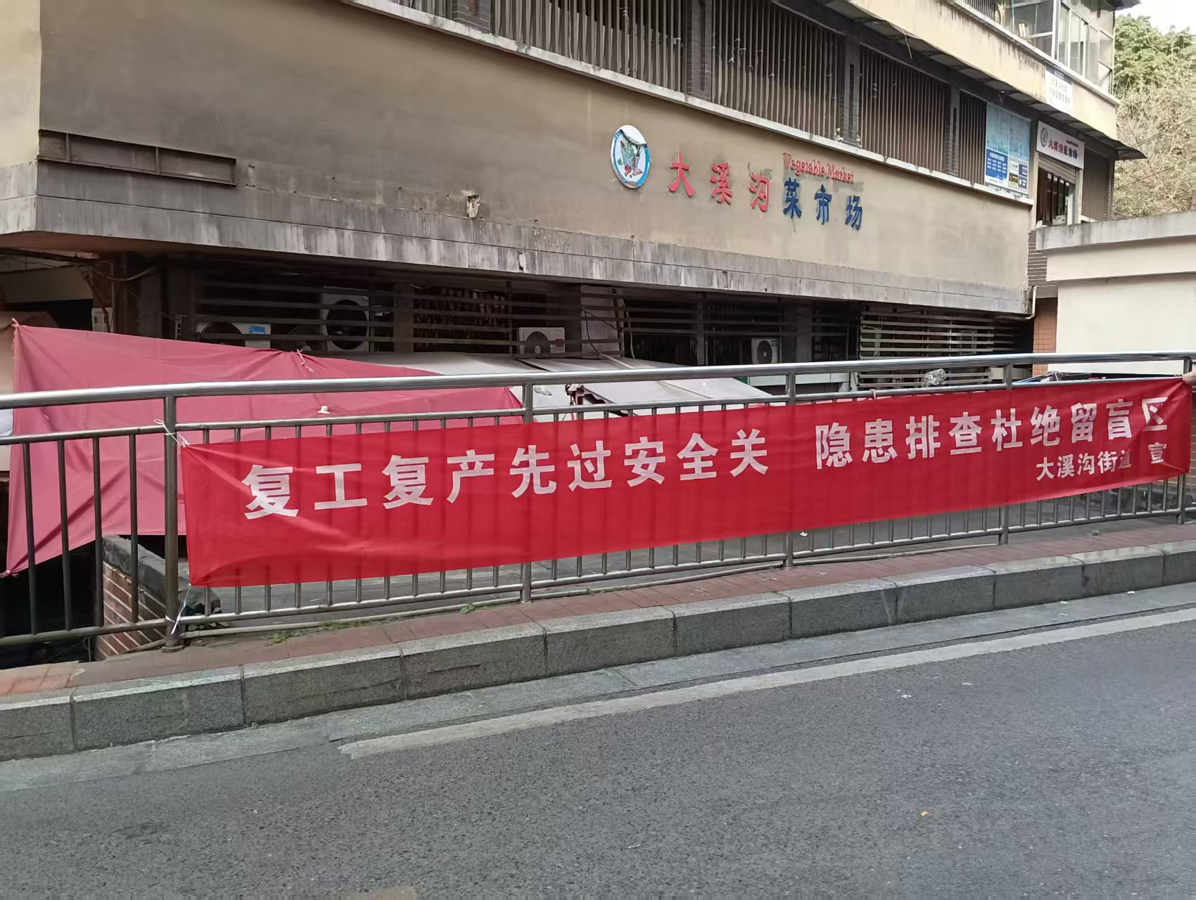 2月24日,大溪沟街道应急办组织各社区在商务楼宇、专业市场、干道周边等人员密集、商铺集中区域通过悬挂主题鲜明的复工复产标语营造浓厚氛围。“调整心态在上岗,遵章守纪保平安”、“严赶走节后综合征,做个安全清醒人”,用一条条朗朗上口的标语,不仅传递了加快复工复产的积极信号,更强调了安全生产的重要性,吸引了众多过往群众和沿街商户的关注,同时街道组织网格人员逐一入户重点企业开展面对面宣传,发放复工复产安全提示,宣传用火用电用气安全,督促落实安全生产主体责任,强化员工岗前培训,确保各项设施完好有效。