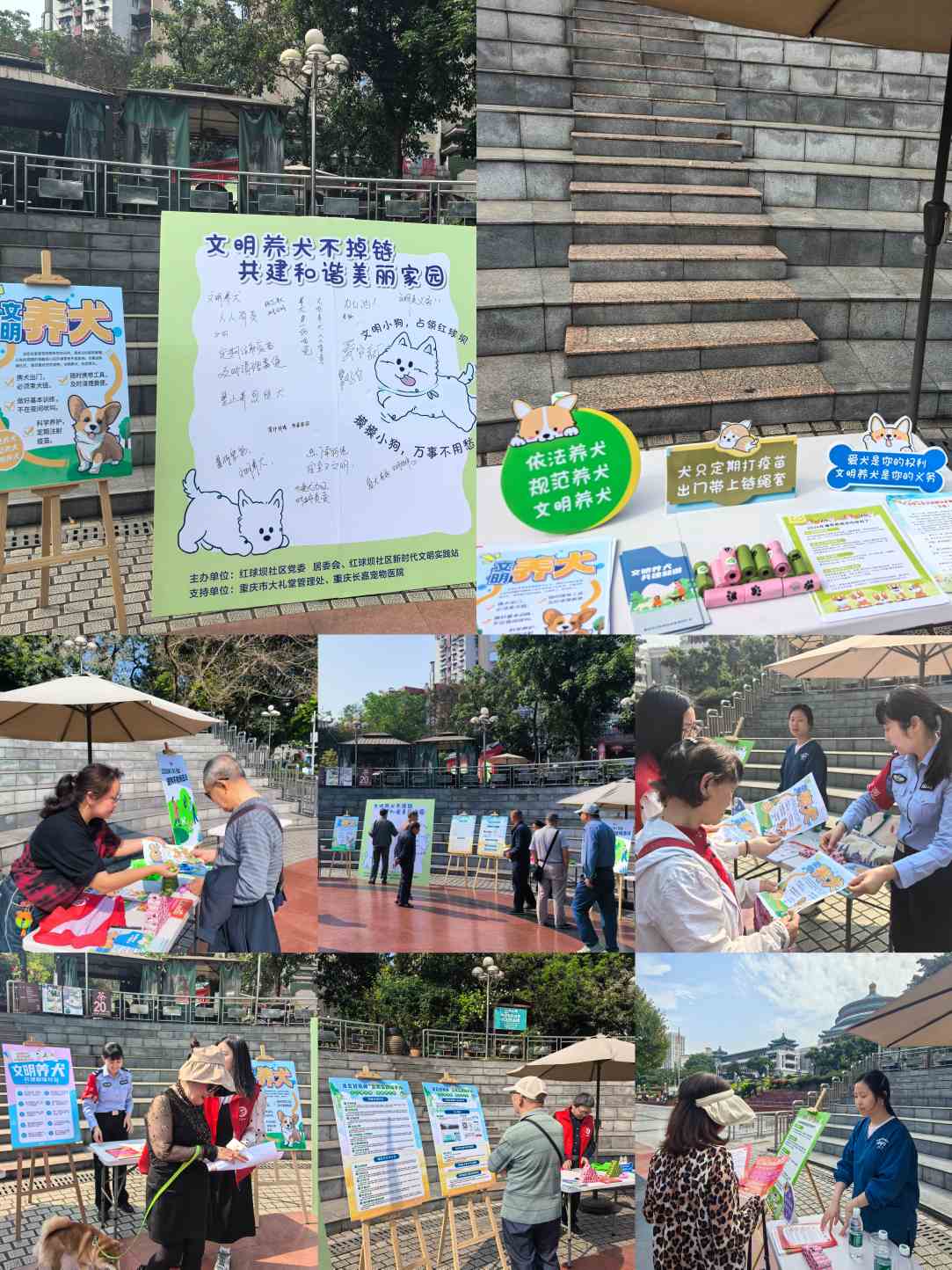 2026年4月10日上午,大溪沟街道红球坝社区新时代文明实践站联合重庆市人民大礼堂管理处、重庆长嘉宠物医院,开展“文明养犬不掉‘链’ 共建和谐美家园”主题文明养犬专项宣传活动。辖区民警和工作人员通过科普讲解、发放宣传资料等形式,向居民普及文明养犬规范,重点倡导养犬居民做到出门牵绳、及时清理宠物粪便、按时完成疫苗接种、规范饲养宠物,着力减少不文明养犬行为引发的扰民、伤人及环境污染等问题,切实强化居民的文明养犬责任意识,共建和谐宜居社区环境。同时联动专业宠物医院提供便民服务,现场开展免费宠物义诊、驱虫咨询、疫苗接种提醒等服务,免费为居民发放宠物拾便袋等实用物品,以贴心服务推动文明养犬理念深入人心。此外,活动还同步宣传推广“渝见好风尚”文明实践随手拍活动,鼓励居民主动参与文明实践,用镜头捕捉身边文明养犬美好瞬间,传递社区文明新风。