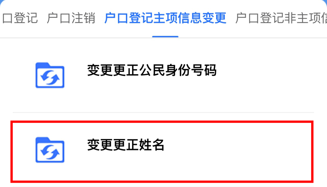 第三步:选择“户口登记主项信息变更”,点击“变更更正姓名”。