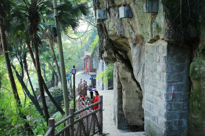 在重庆城西鹅岭山脊,两侧环江,三面悬崖,有“四塞之险,甲于天下”之称,自古兵家必争之地。相传唐 李商隐于大中九年(855)从巴州前往梓州任职,途经佛图关,在此处借宿时写下了《夜雨寄北》,明代在这里 曾有“巴山夜雨涨秋池”的夜雨寺。