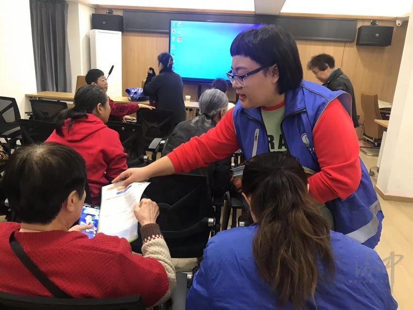 工作人员发放宣传资料。