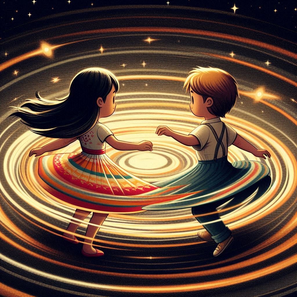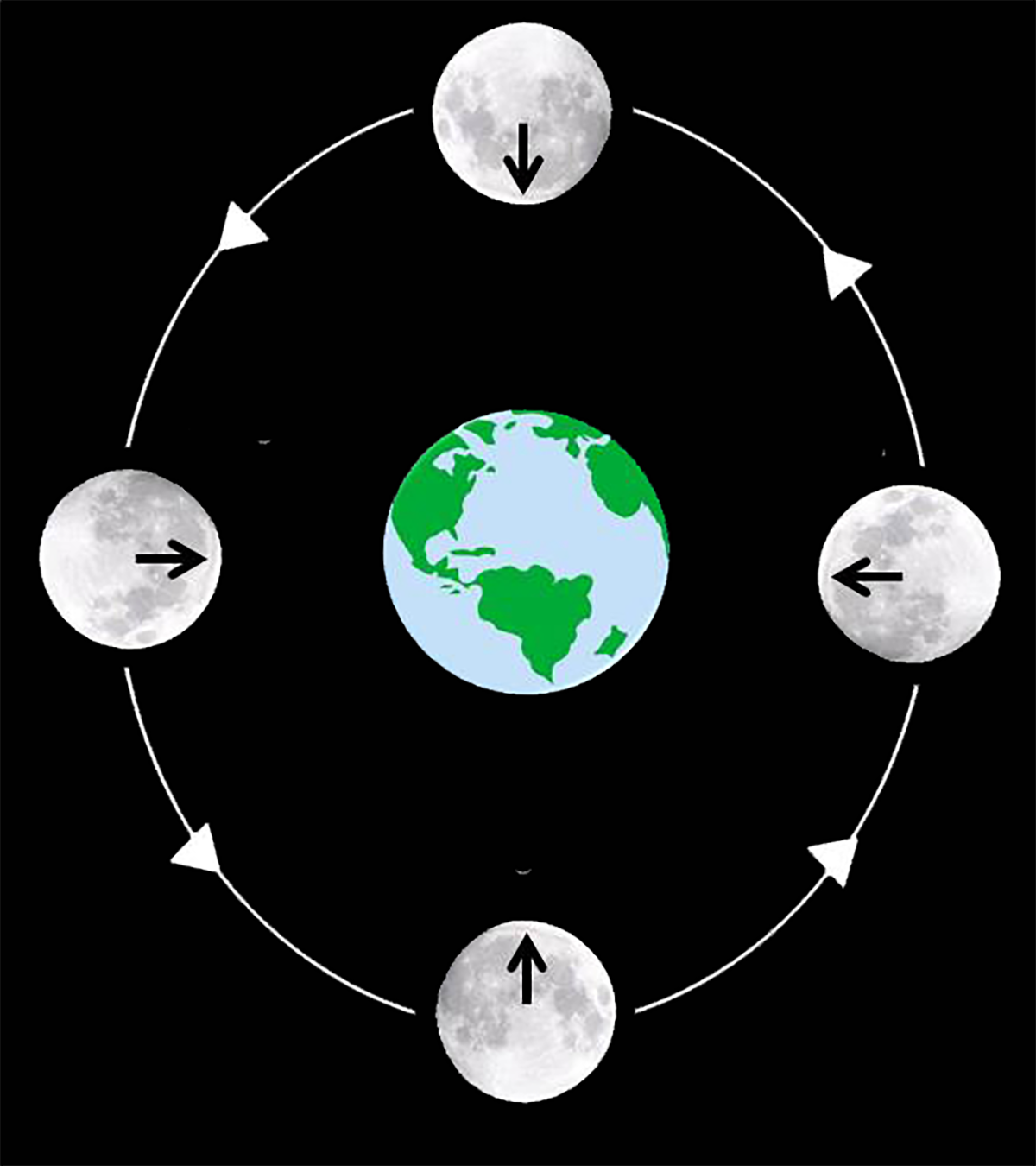 想象一下,你和一个朋友在原地转圈,如果你们俩转的速度一样快,那么你永远只能看到朋友的正面,对吧?月球和地球也是这样。月球每转一圈,正好也是绕地球转一圈。这就好像你和朋友一直保持着相同的步伐,你永远只能看到他的一面一样。