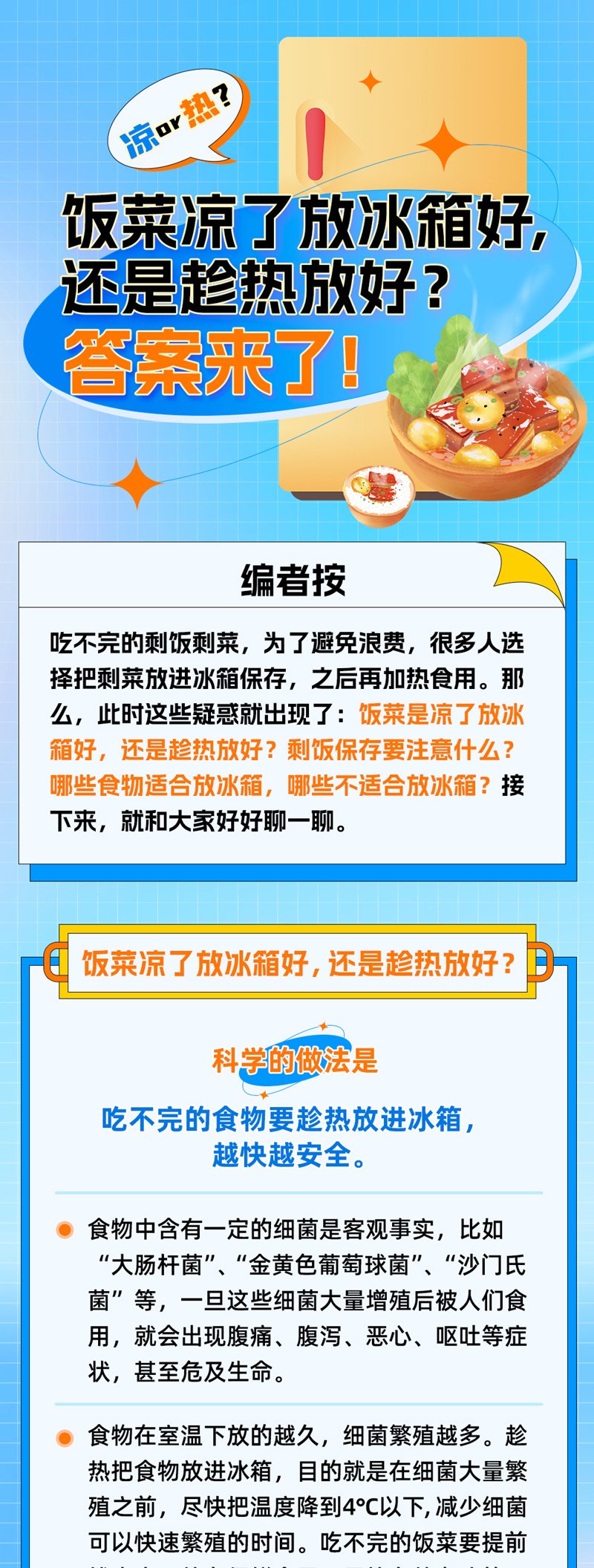 食品安全 | 饭菜凉了放冰箱好,还是趁热放好?答案来了!
