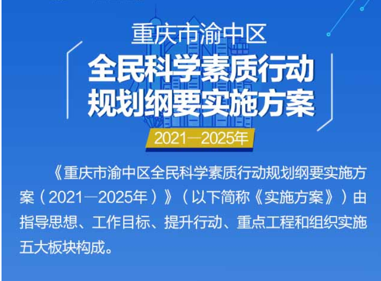 为贯彻落实党中央、国务院关于科普和科学素质建设的重要部署及市委、市政府相关工作要求,根据《国务院关于印发全民科学素质行动规划纲要(2021―2035年)的通知》(国发〔2021〕9号)和《重庆市人民政府办公厅关于印发重庆市全民科学素质行动规划纲要实施方案(2021―2025年)的通知》(渝府办发〔2021〕138号)要求,为进一步做好我区“十四五”期间全民科学素质建设工作,制定本实施方案。