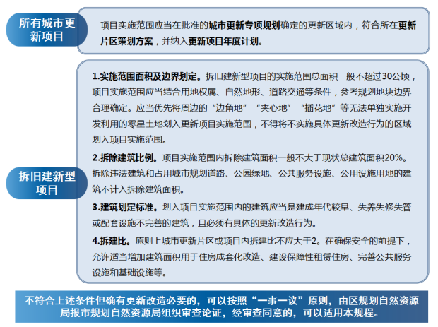 不符合上述条件但确有更新改造必要的,可以按照“一事一议”原则,由区规划自然资源局报市规划自然资源局组织审查论证,经审查同意的,可以适用本规程。