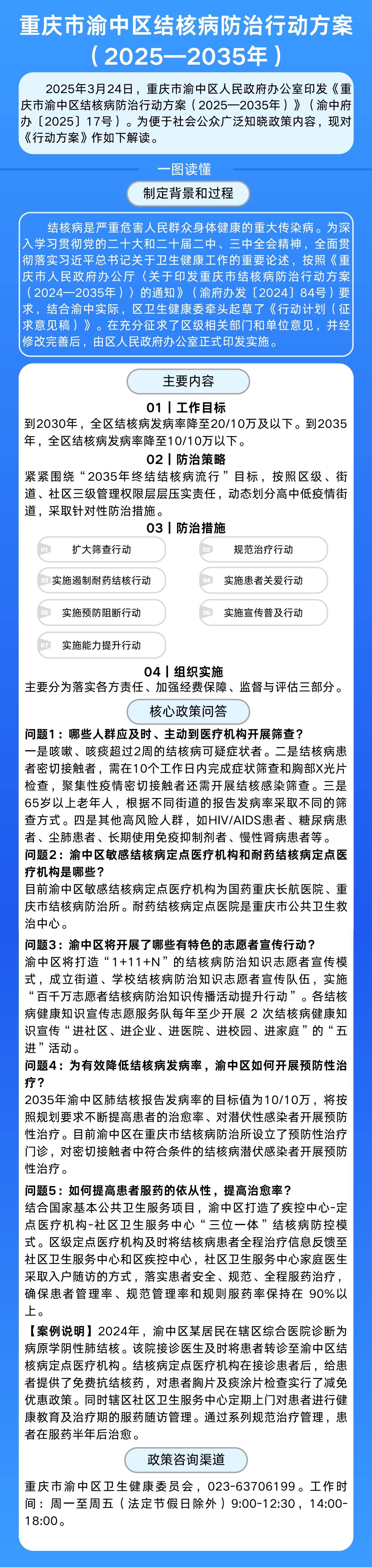 为深入学习贯彻党的二十大和二十届二中、三中全会精神,全面贯彻落实习近平总书记关于卫生健康工作的重要论述,按照《重庆市人民政府办公厅〈关于印发重庆市结核病防治行动方案(2024—2035年)〉的通知》(渝府办发〔2024〕84号)要求,结合我区实际,制定本方案。