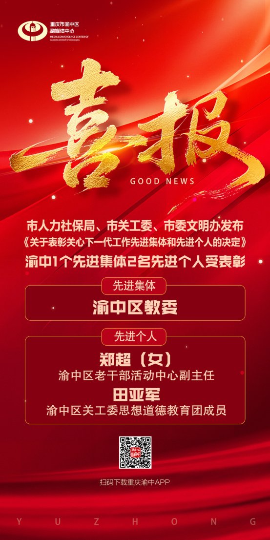 喜报|关心下一代,渝中1个先进集体+2名先进个人受表彰!