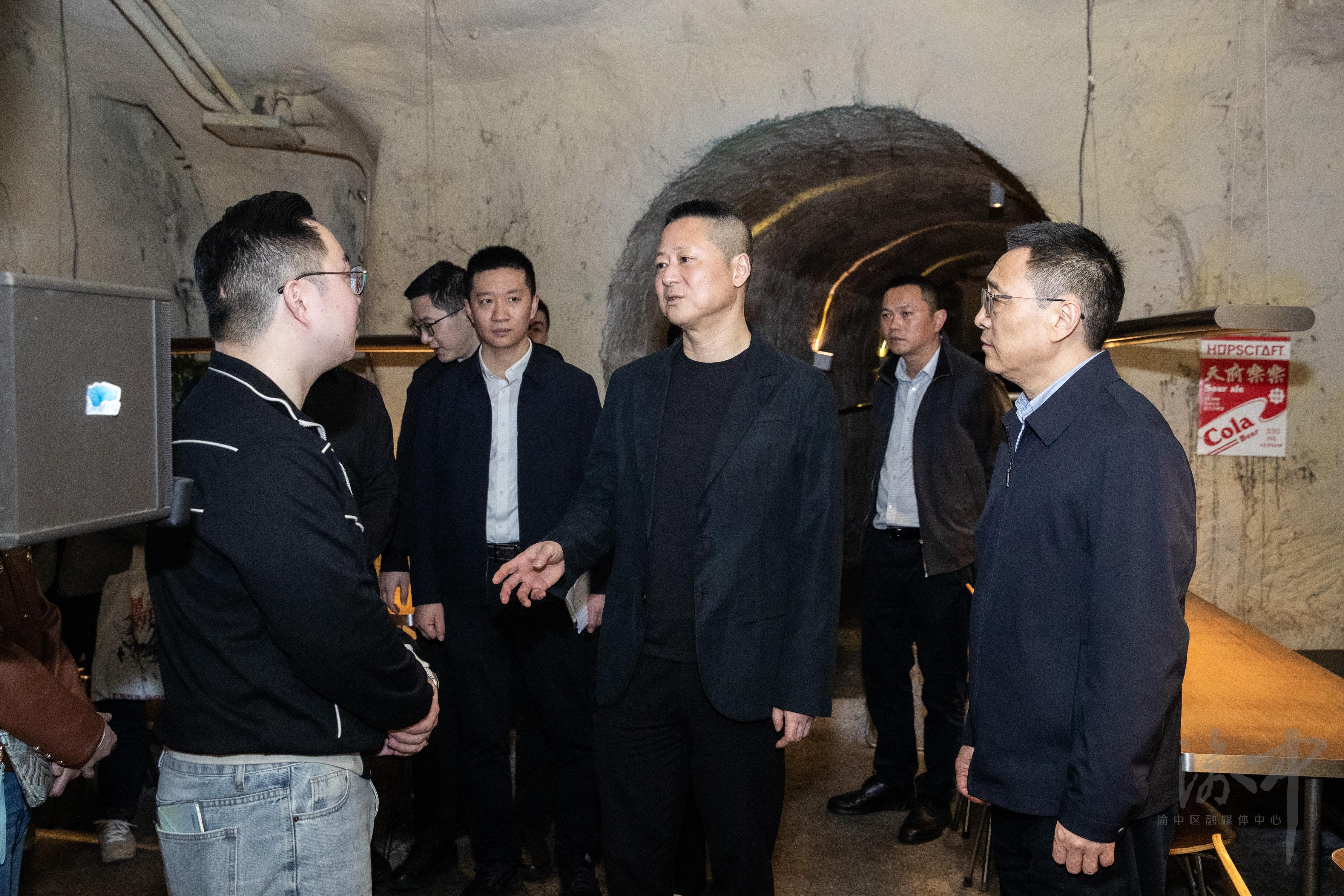 足球下注平台 委书记、区长谢东在CAVER防空洞酒吧调研品质消费场景打造工作。