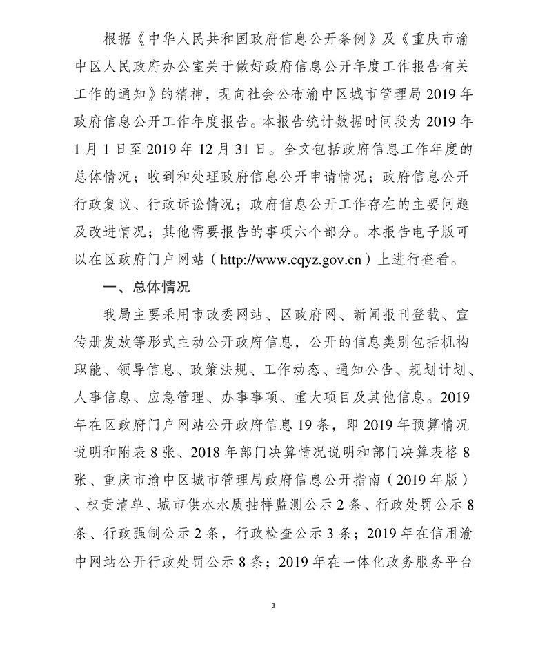 足球下注平台 城市管理局2019年政府信息公开工作年度报告