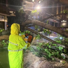 应急处置:凌晨4时50分,受强降雨天气影响,接局指挥中心调令,前往新华路联合国际处处置树木倒伏事件,渝中支队赓即出动5人次,1车次,携带布控球、智能头盔、油锯、绳索、对讲机、警戒带等装备,迅速到达事发地点,并展开应急处置任务,于5时15分许处置完毕,恢复交通。