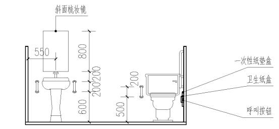 2 坐便器旁应设置一次性纸垫盒、卫生纸盒、呼叫按钮等装置;